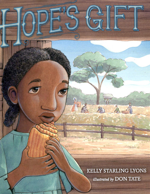Today Brown Bookshelf members Kelly Starling Lyons and Don Tate celebrate the publication of their new book, Hope’s Gift (Putnam Juvenile, December 27, 2012). Kelly writes a poignant story that celebrates the 150th anniversary of the Emancipation Proclamation. Don Tate illustrates this significant moment in American history.