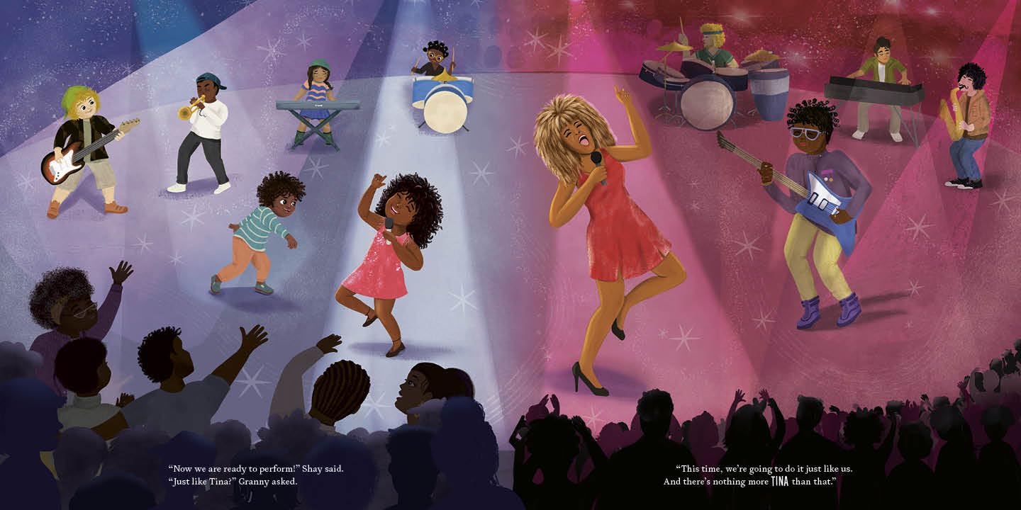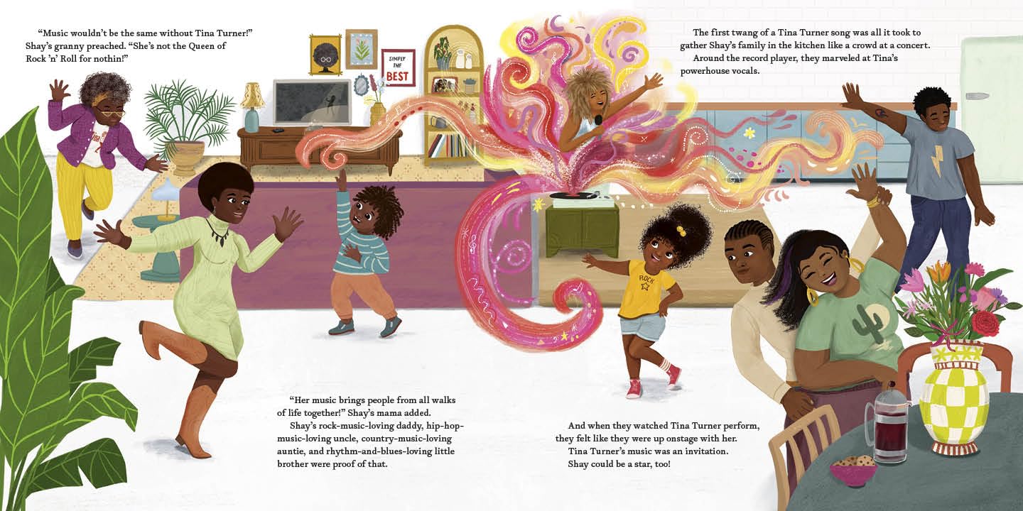 With my picture book debut, Just Like Tina, revision helped me hold onto the thing I cared about the most. It was important to me to build a world that centered Tina Turner’s humanity in ways the world hasn’t always done. We all know Tina on stage. The powerhouse, the hair, the dresses, the Queen of Rock ’n’ Roll. That legacy deserves to be honored, and it lives in every spread of the book. But it was equally important to me that readers meet the human and heart behind the icon.